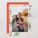 A classic holiday card featuring a background with pine tree branches and red berries. Personalise with your names and favourite picture.