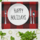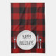 Happy Holidays Plate On Buffalo Plaid Tea Towel