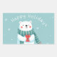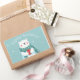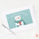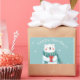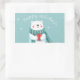 Adorable polar bear in a scarf hugging a tiny wrapped gift, surrounded by falling snow and a friendly “Happy Holidays” message.