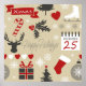 Seamless Happy Holidays design Christmas symbols - snowflakes, deer, calendar, Christmas tree, Christmas gift, skate, hearts, Christmas ornament, Christmas stocking, ribbon - decoration on grey background