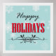 Vintage style Happy Holidays design with snowflakes and floral decoration on blue background
