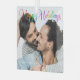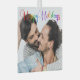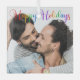 Elegant Happy Holidays photo Christmas ornament with beautiful rainbow cursive typography. This modern LGBTQ holiday family photograph gift features gorgeous script and your name in white over the full bleed picture of an LGBT couple.