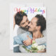 Elegant Happy Holidays photo card with beautiful rainbow cursive typography. This modern LGBTQ holiday family photograph card features gorgeous script and your name in white over the full bleed picture of an LGBT couple. Personalise with your Christmas message on the back.