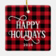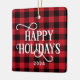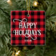 Happy Holidays Red Buffalo Plaid Family Photo Ceramic Ornament