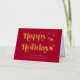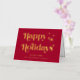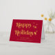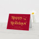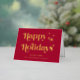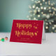 Elegant red Christmas folded card featuring "Happy Holidays" showcased in stylish typography and your name in classic serif typography, all rendered in your choice of real gold or silver foil. Add a personalised message on the inside or leave blank for a hand-written note.