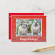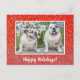 Personalised modern holiday postcard featuring your favourite photo of your pets or family, on a red glitter background. You can easily personalise with a photo of your dogs, cats and/or family, customise the front greeting, and personalise the inside message and signature.