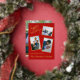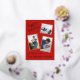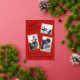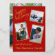 Personalised happy holidays gold foil card. Design features 3 frames for your favourite photos on the front and 1 print all over photo in the back. All of our love message is customisable for you to edit it make it unique. Family name also in gold foil. Elegant and festive red background is also customisable and can be changed for any colour. Happy Hollidays from Suki's