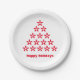 Happy Holidays red white snow Stars Tree Paper Plate