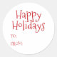 Happy Holidays red white to from blank cute Classic Round Sticker