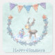 Happy Holidays Reindeer Bunny Wreath Snow Scene Square Sticker