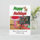 Christmas flat card with happy holidays in 3D green and red text and a reindeer. Customise with your own photo and text. Available in several styles and sizes.