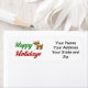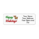 Label with happy holidays in 3D green and red text and a reindeer. Customise this with your own address and use to send out Christmas cards and gifts. Three label sizes to choose from.