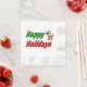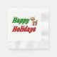 Paper napkins with happy holidays in 3D green and red letters and a reindeer. Napkins available in several colours and styles.