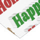 Tablecloth with happy holidays in 3D green and red letters and a reindeer. Tablecloth available in several sizes.