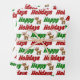 Wrapping paper sheets with happy holidays in 3D green and red text and a reindeer. Available in several styles and sizes.