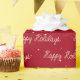 Happy Holidays text in a nautical rope design with snowflakes on red background.