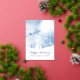Below the sky, snow drifts cradle a peaceful landscape of blue and white fir trees, creating a serene holiday moment. The phrase “From our family to yours” is fully customisable, followed by editable fields for family member names and the year—making this card a heartfelt keepsake for loved ones near and far.