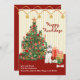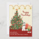 Happy Holidays Cute Siberian Husky Christmas Card is festive and elegant. Hand painted watercolor ornaments, on a star topped tree and special presents, even a bone for the dog send a happy howlidays message. This Cute Siberian Husky is wearing his special red plaid bow tie. The background of the design is a yellow and cream stripe with a garland of sparkling gold stars. All of the text is editable, from the "happy howlidays" to the Christmas message with your family and dog's name. Just use the PERSONALIZE option to make it your own. The back of the card is a matching red with garland and and editable holiday message. You will find this beautiful Christmas card along with many other dog breeds in our CUTE FESTIVE DOG THEME HAPPY HOWLIDAYS collection in our store. Message if you need help.