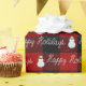 Happy Holidays text in nautical rope design with snowman and snowflakes on black and red buffalo background.