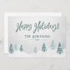vintage typography. A beautiful scenic view of trees and winter snow in watercolor style artwork highlights the front of the card. The back of the card features text space for your personal holiday message or can be left blank for you to handwrite one if needed. Available in high quality printed card stock for standard mailing or a downloadable, digital format for quick and easy sending via text message, email or even self print.