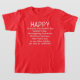 The t-shirt feels and looks great quality, a good thick cotton. It will be a little big for my son, but that means he will be able to wear it and not out grow it too soon. The print was as described on the order when personalised. True size, shape and colour T-shirt- thanks.