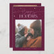 Elegant and modern holiday card featuring a typography text that says "Happy Holidays" with a picture. Add another photo on the back along with your message. Background is cranberry.