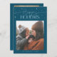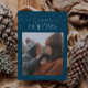 Elegant and modern holiday card featuring a typography text that says "Happy Holidays" with a picture. Add another photo on the back along with your message. Background is teal.
