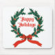 Happy Holidays Vintage Holly Christmas Wreath Mouse Pad