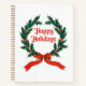 Happy Holidays Vintage Holly Christmas Wreath Notebook