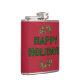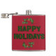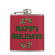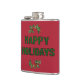 A festive flask with the "Happy Holidays" in a green and black chequered type font. At the top and bottom there are a couple of sprigs of holly and red berries. This flask can be customised.