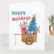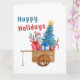 Happy Holidays Wagon with Snowman Card