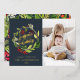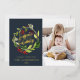 Happy Holidays rustic watercolor floral navy blue elegant modern minimal 1 photo Holiday foil card. Part of a collection.