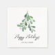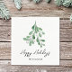 These festive napkins are decorated with watercolor green mistletoe and say Happy Holidays in stylish typography.