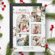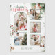 This lovely and artistic multi-photo design includes one arched and four square-shaped photo templates on an elegant floral background featuring watercolor-style red and green winter holly berries and greenery. It also includes a festive red and green "Happy Holidays" text graphic in custom fonts and two editable text fields.