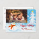 Personalise the front and back of this fun photo Christmas postcard. Add your photo and text to this colourful watercolor Christmas card of a snowman among snowy Christmas trees in a clear blue sky. You can personalise the backside holiday greeting, your return address and your names in script near the bottom with space for you to add a handwritten personal note.