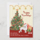 Happy Holidays White Poodle Christmas Card is festive and elegant. Hand painted watercolor ornaments, on a star topped tree and special presents, even a bone for the dog send a happy howlidays message. This cute White Poodle is wearing his special red santa hat. The background of the design is a yellow and cream stripe with a garland of sparkling gold stars. All of the text is editable, from the "happy howlidays" to the Christmas message with your family and dog's name. Just use the PERSONALIZE option to make it your own. The back of the card is a matching red with garland and and editable holiday message. You will find this beautiful Christmas card along with many other dog breeds in our CUTE FESTIVE DOG THEME HAPPY HOWLIDAYS collection in our store. Message if you need help.