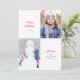 Celebrate the magical and festive holiday season with our custom holiday photo cards. Our modern holiday design features a two-family photo holiday card layout with a sleek, modern, and simplistic photo layout with snowy white bokeh lights. The reverse side features the same photos from the front.