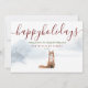 Personalize your name and date on this chic holiday card featuring a fox on a winter scene woodland background. Designed by Thisisnotme©
