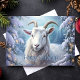 Celebrate the season with this enchanting winter goat Christmas card. Featuring a serene goat amidst a snowy forest scene, decorated with subtle festive lights, this unique card is perfect for those who appreciate farm animals and nature-inspired holiday designs. Bring a rustic charm to your holiday greetings with this delightful goat Christmas card.