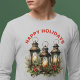 Introducing our exquisite Happy Holidays Winter Lantern T-shirt; a perfect blend of elegance and warmth. The Door Mat showcases a captivating watercolor design featuring lanterns aglow with the gentle flicker of candles, embraced by lush holly leaves, vibrant red berries, pine branches, and crimson red blossoms. The phrase Happy Holidays sends a cheerful message and can be customised. The perfect t-shirt for the holiday season, Edit text from the product page, or to change font styles, colour or placement, use the design tool. This product coordinates perfectly with the rest of our Happy Holidays Winter Lantern Collection.