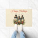 Introducing our exquisite Happy Holidays Winter Lantern Door Mat; a perfect blend of elegance and warmth. The Door Mat showcases a captivating watercolor design featuring lanterns aglow with the gentle flicker of candles, embraced by lush holly leaves, vibrant red berries, pine branches, and crimson red blossoms. The phrase Happy Holidays sends a cheerful message and can be custom sized. The perfect Door Mat for the holiday season, Edit text from the product page, or to change font styles, colour or placement, use the design tool. This product coordinates perfectly with the rest of our Happy Holidays Winter Lantern Collection.
