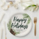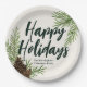 Happy Holidays Winter Pine Greenery Ivory Paper Plate