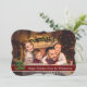 A modern photo Christmas card design with your family photo filling the card face. Fun modern art Christmas tree decor with dark red text band for your words.