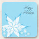 Featuring a blended colour pattern of blue and white with pointed snowflake graphics and a "Happy Holidays" message. Change the text, font, colour, size and placement for the best experience.