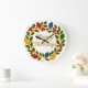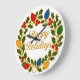 Happy Holidays Wreath Christmas Lights and Holly Large Clock