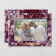 Happy Holidays in black cursive text. Burgundy twinkly background with gold, stars and light orbs. Add your family photo, name and optional message on the back. If you dont want to add a message, either delete the text ( in the personalise section) or just change it to Christmas 2020.
