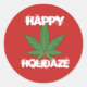 Happy Holidaze Personalised stickers with green weed leaf on red background with dazed snowy white text that says "Happy Holidaze." It's always a good time for the Holi-daze and these plates are festive for sure. If you like, you can customise or personalise these plates or other coordinating home decor items by adding or changing images and text as well as the font, colours and background.