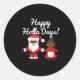 Happy Holla Days Santa And Mrs Claus Black Christm Classic Round Sticker