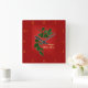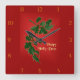 Bright, vibrant red Christmas Christmas Clock with Holly Leaves, Berries, and the words "Happy Holly-Days." .