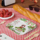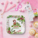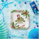 This design features watercolor Christmas foliage, berries, a cute illustration of Santa Claus climbing down chimney and the words “Merry Christmas! Happy Holidays!” will add festive way to serve meals at your Christmas party.